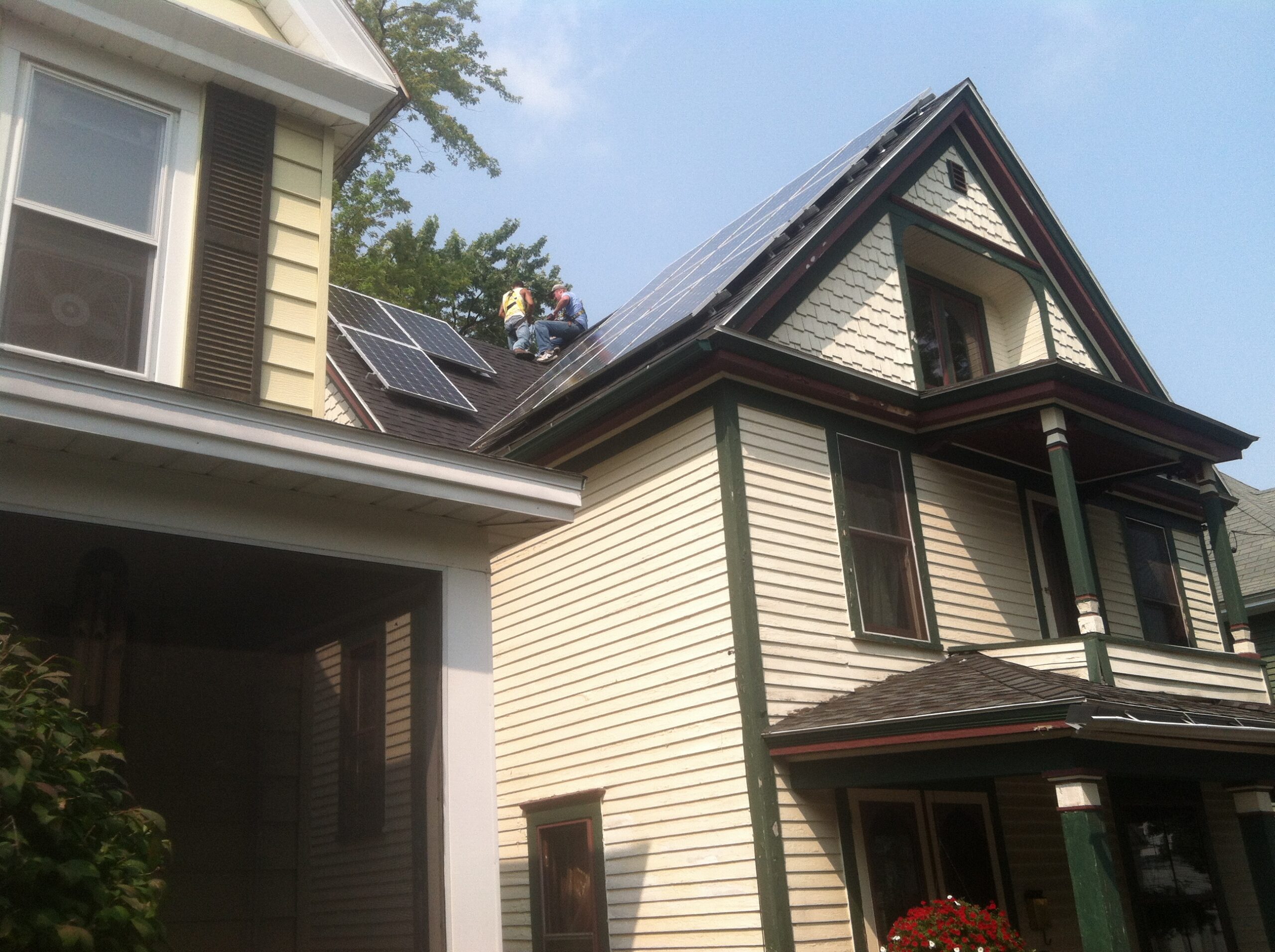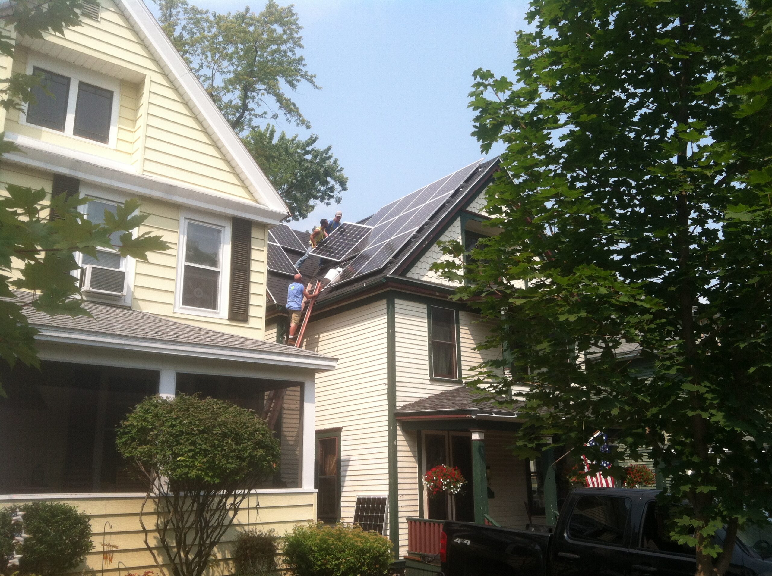 Kyle Thomas’ 1800 sq ft home, located in densely populated downtown Syracuse, boasts an already-functioning 6.44 kW solar PV system. But 248 Bryant Ave has more than meets the eye: it is in mid-installation of a geothermal heating and cooling system. The system will consist of a 4-ton combination heat pump (water-to-water/water-to-air), and two 300-ft closed vertical ground loop heat exchangers.